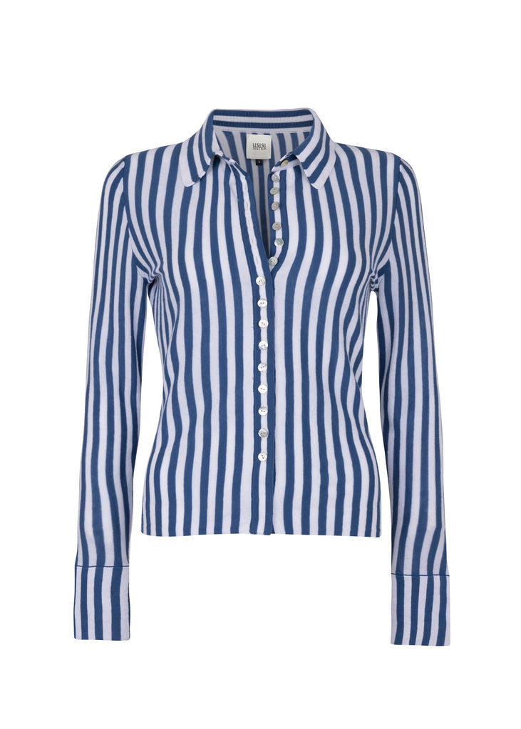 An elevated take on a timeless staple. The Striped Knit Shirt is crafted from a soft, breathable cotton and is designed with a relaxed fit, open collar, and subtle ribbed detailing. The Gia shirt carries the ease of a classic shirt with a refined, modern sensibility. Style it loosely over tailored trousers or layered under a blazer for an effortless, all-season look.